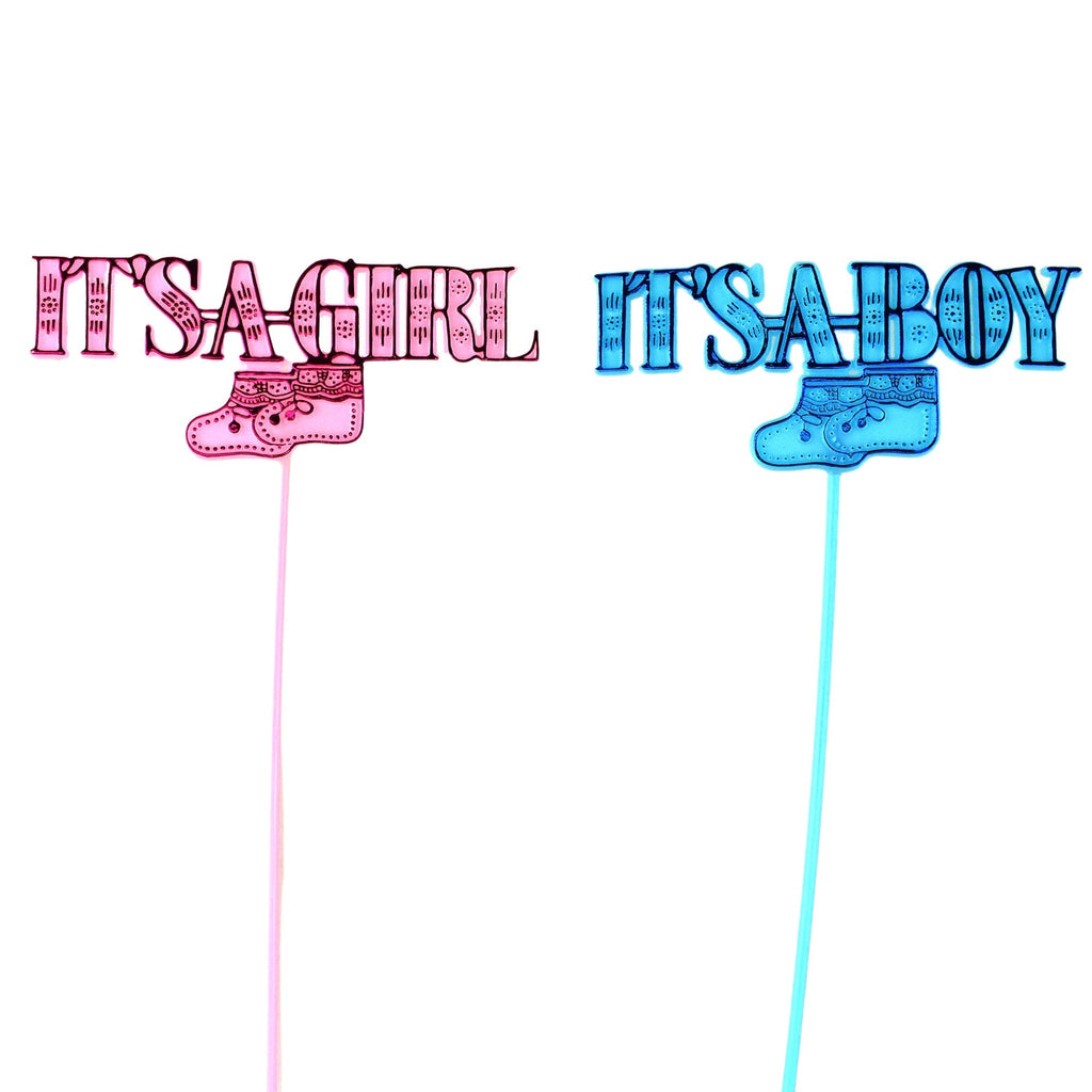 It's a Boy/Girl Sock Party Pick Topper, 11-1/2-Inch, 12-Count