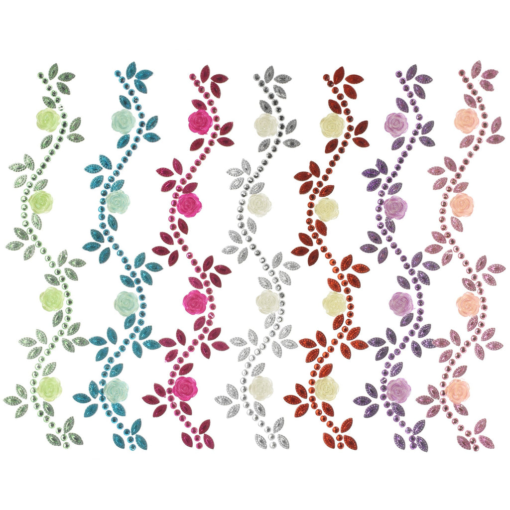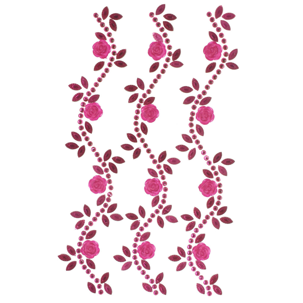Floral Accented Rhinestone Swirl Stickers, 6-1/4-Inch, 3-Count