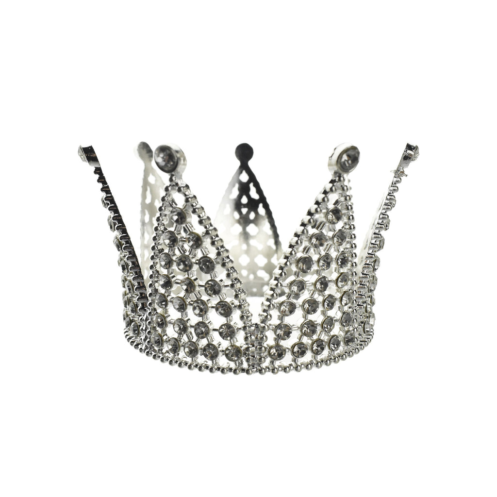 Make your event a royal occasion, any day of the year! This metallic crown features an iconic jester style with rhinestone accents and is finished with a shiny metallic paint. Perfect for a cake topper, tablepiece, or party accessory!
