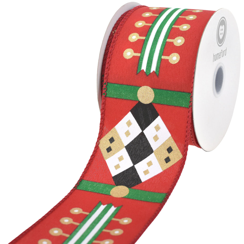 Christmas Nutcracker Uniform Pattern Wired Ribbon, 2-1/2-inch, 10-yard