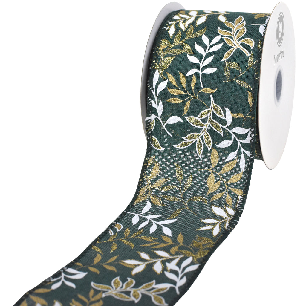 Christmas Pressed Branches Faux Linen Wired Ribbon, 2-1/2-inch, 10-yard