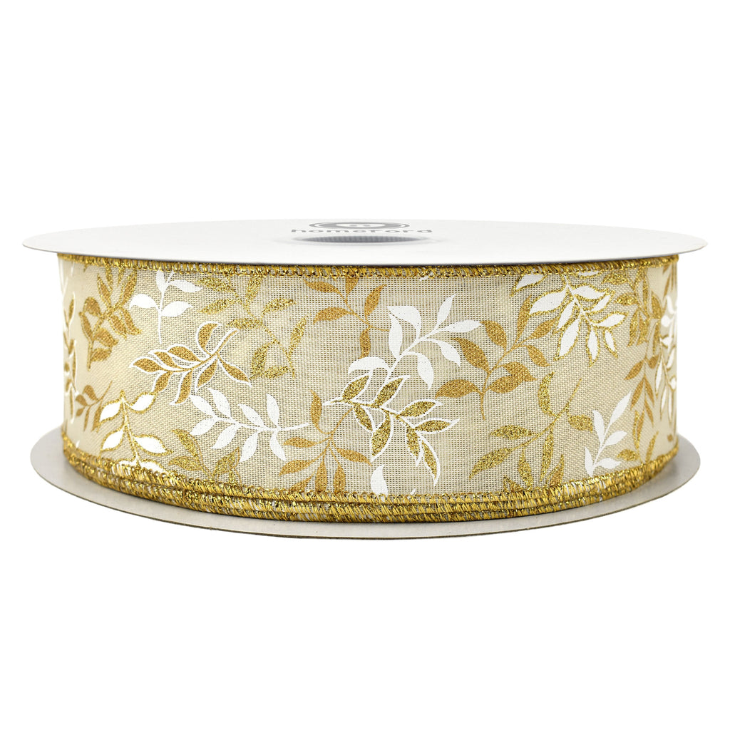 Christmas Pressed Branches Faux Linen Wired Ribbon, 2-1/2-inch, 50-yard