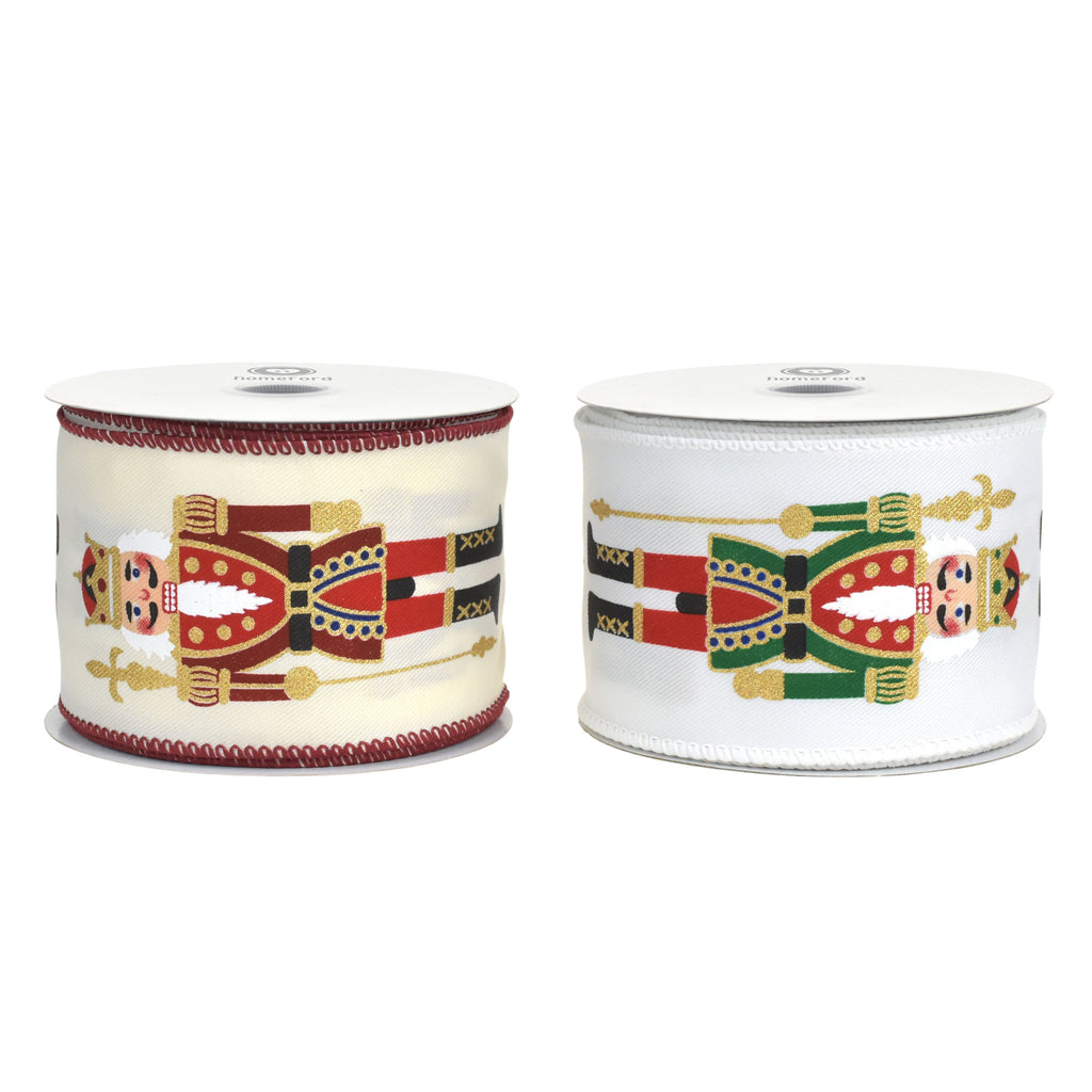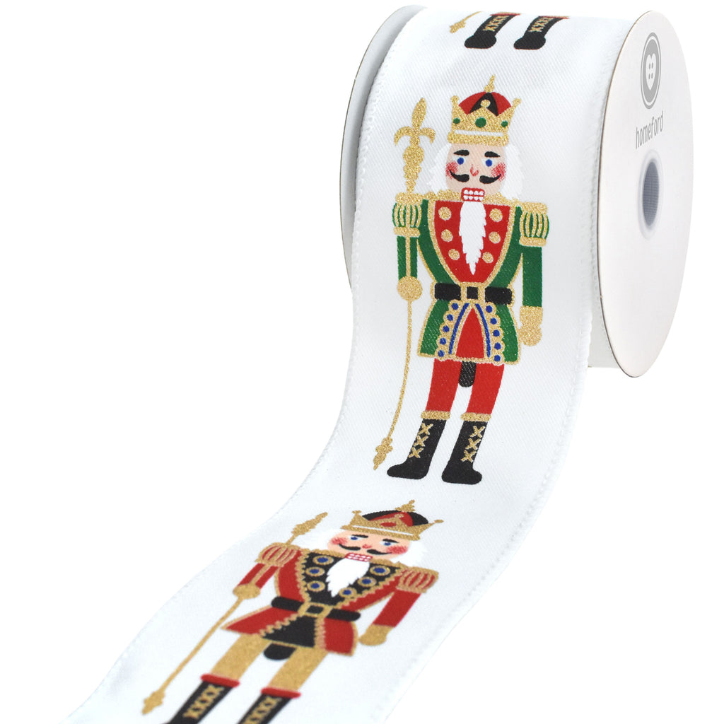 Christmas Regal Nutcrackers Faux Linen Wired Ribbon, 2-1/2-inch, 10-yard