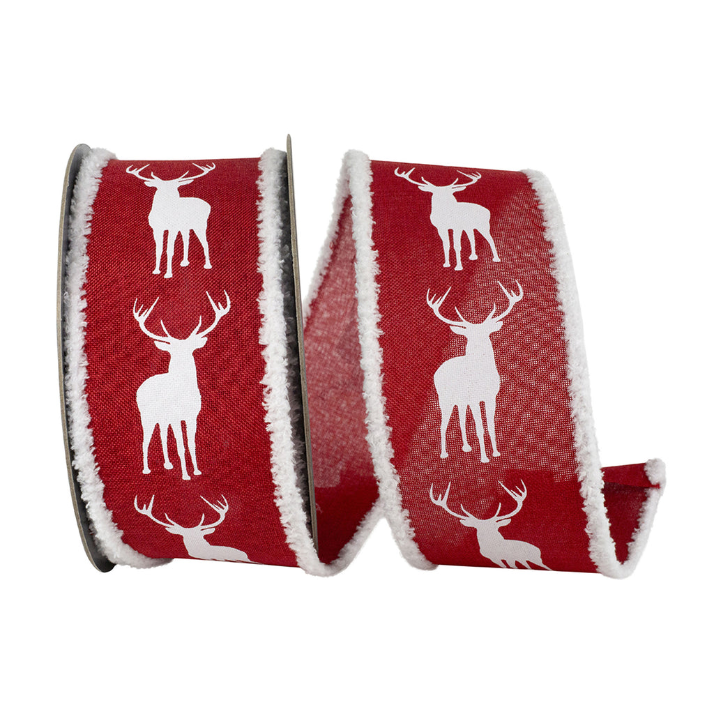 Christmas Reindeer Frizette Edge Wired Ribbon, 2-1/2-inch, 10-yard