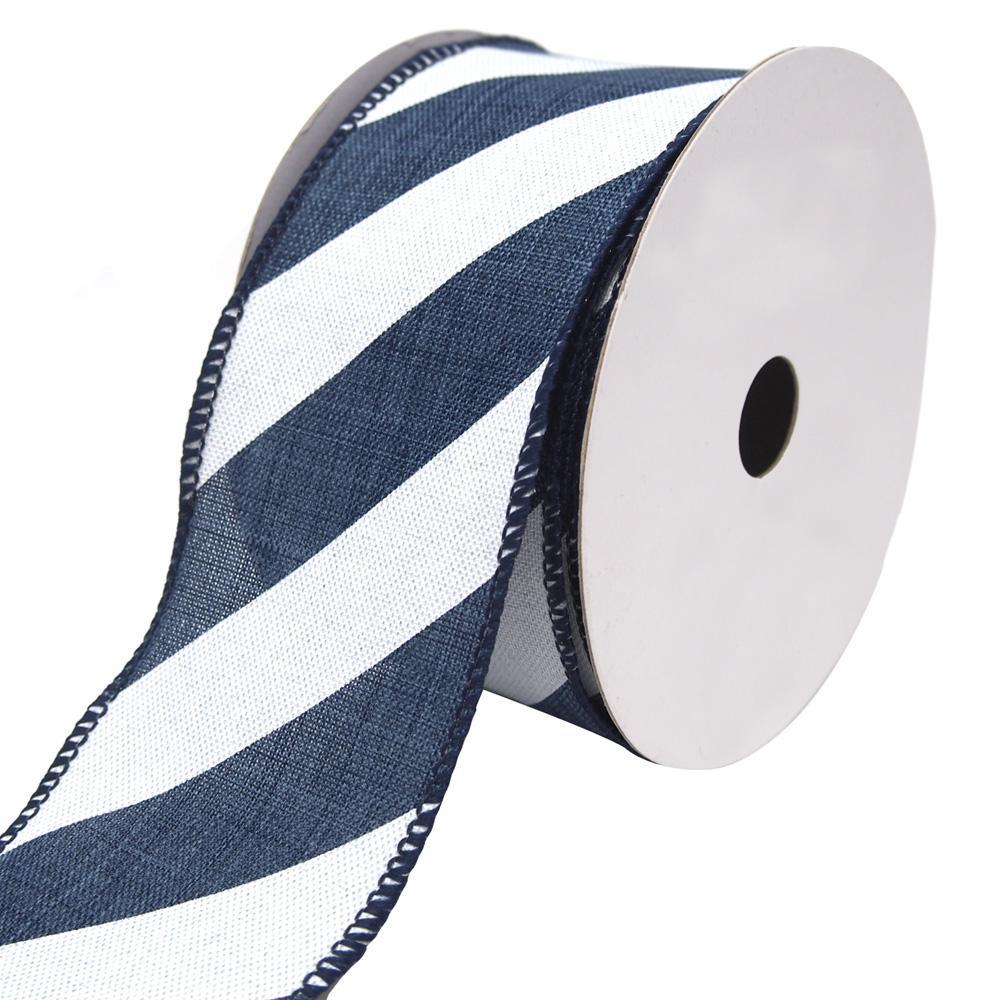 Diagonal Striped Faux Linen Nantucket Ribbon, 2-1/2-Inch, 10-Yards