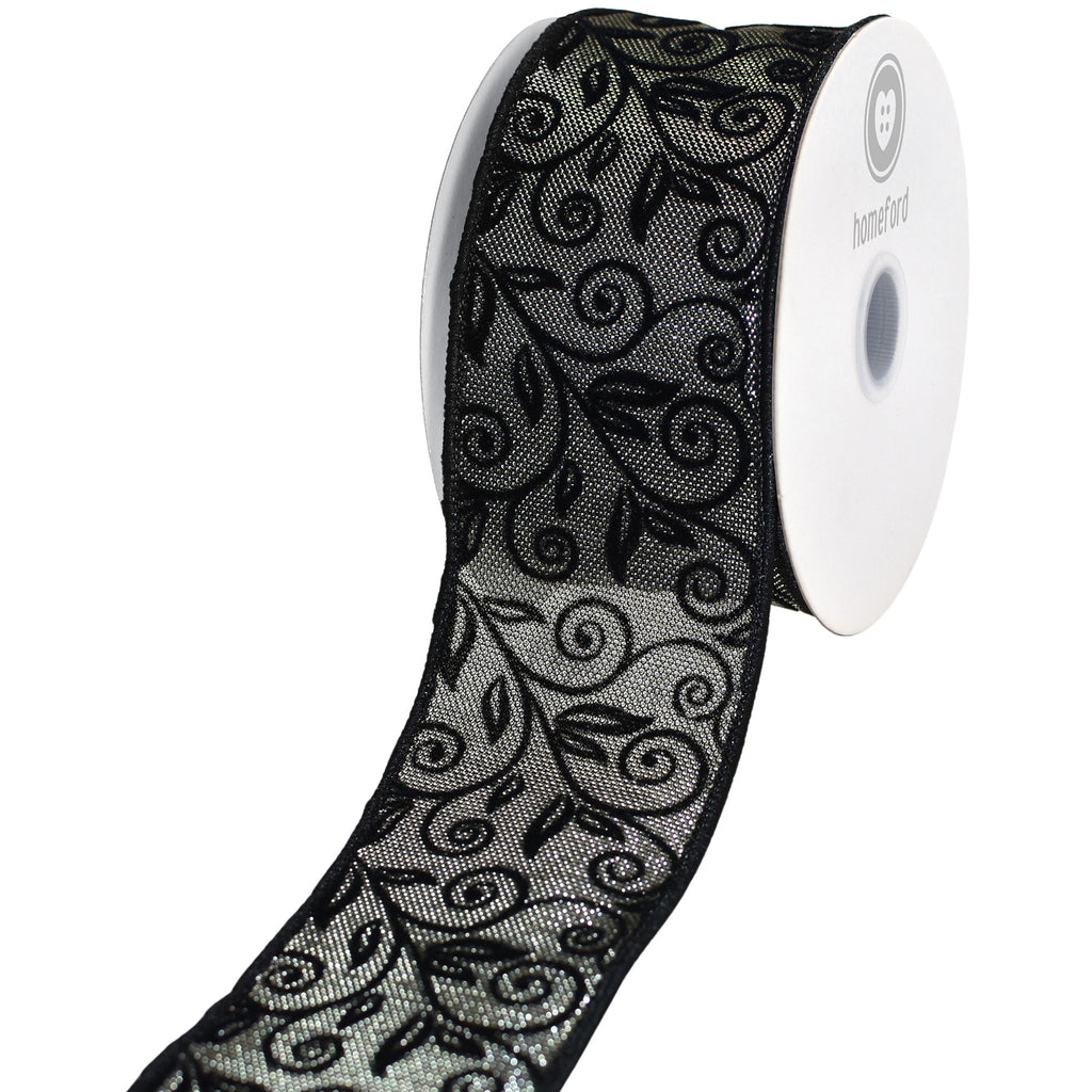 Flocked Swirls Metallic Honeycomb Wired Ribbon, 2-1/2-inch, 10-yard