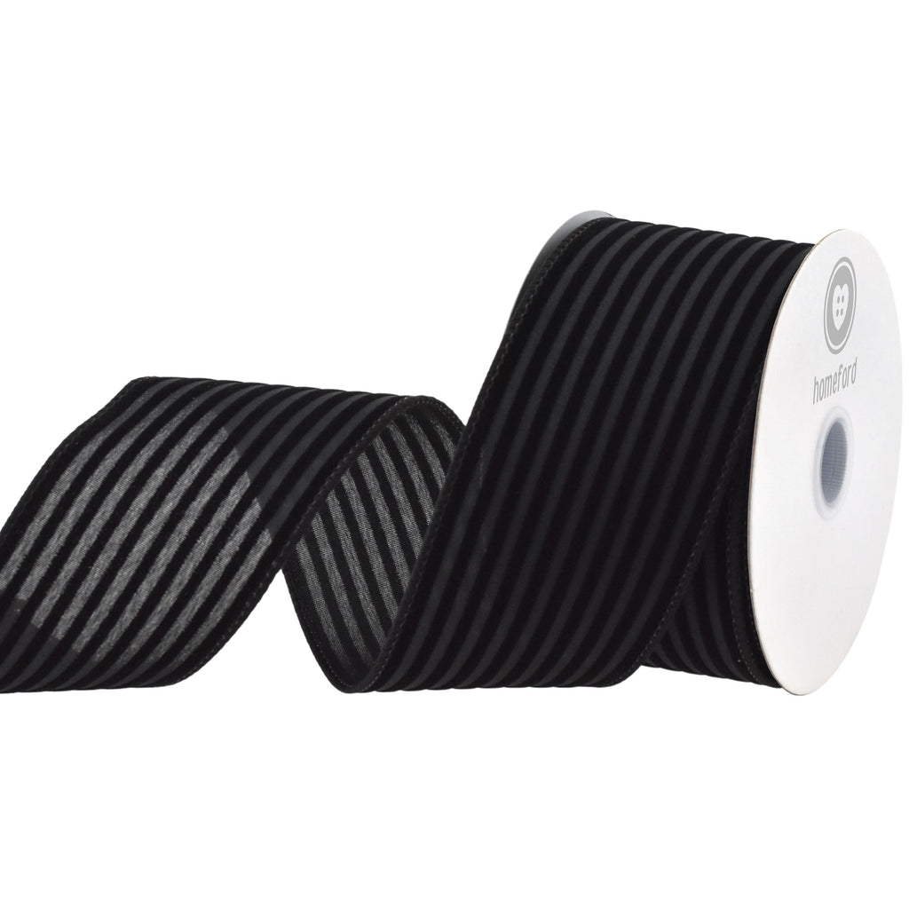 Flocked Thin Cabana Stripes Wired Ribbon, 2-1/2-inch, 10-yard