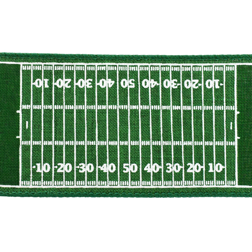 If you love sports and want to add some fun to your home or office space, this wired ribbon is perfect for you! The faux linen fabric has a football field pattern with decorative yard lines (not to scale) and a green and white color palette. The wired design makes it easy to shape the ribbon into whatever you want! Note: Contains wire Length: 10 yd Width: 2.5"