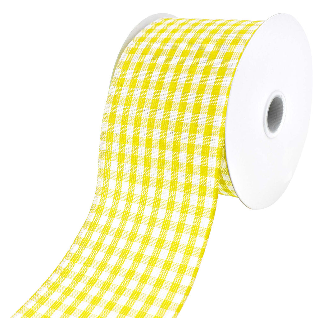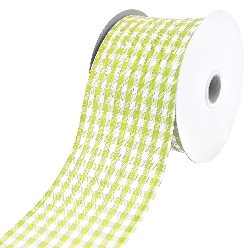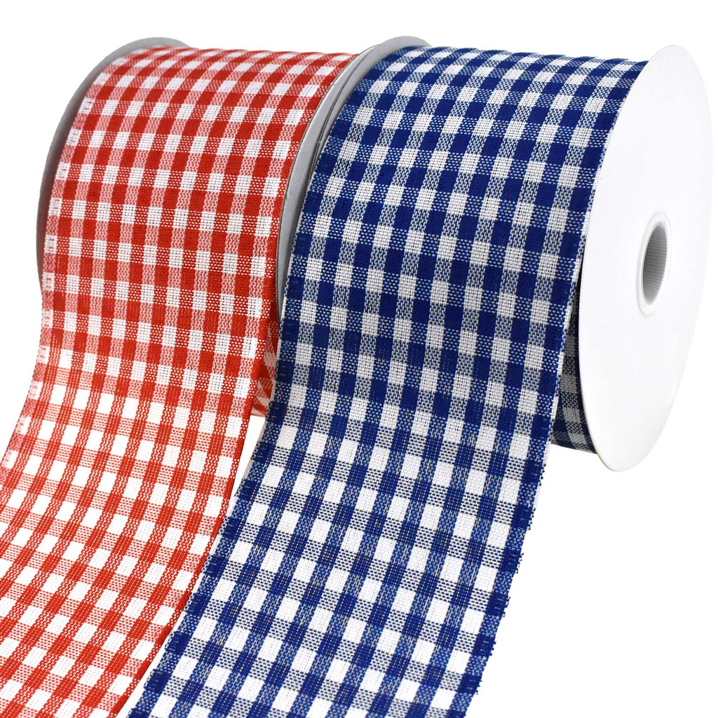 Add your own personal touch to any project! This ribbon features a gingham plaid pattern available in a variety of bright, beautiful colors for the perfect finishing touch to any gift, home decor, DIY, or craft project you use these with. Take your decorating or DIY to the next level! Note: Contains wire Length: 10 yd Width: 2.5"