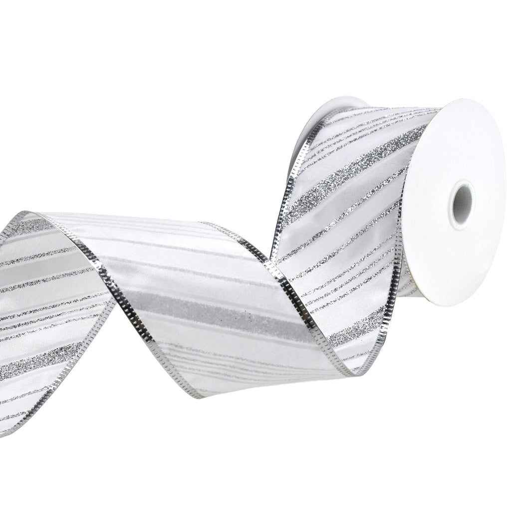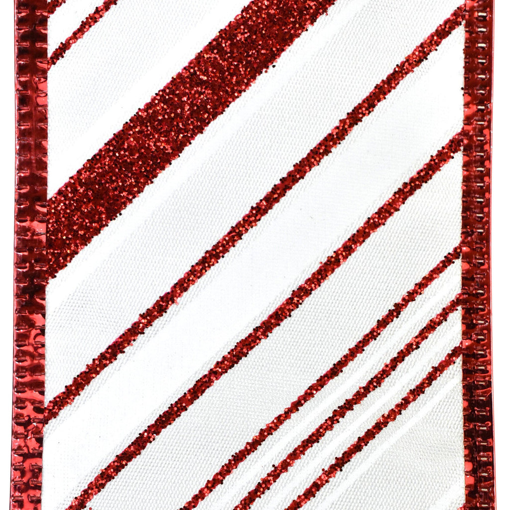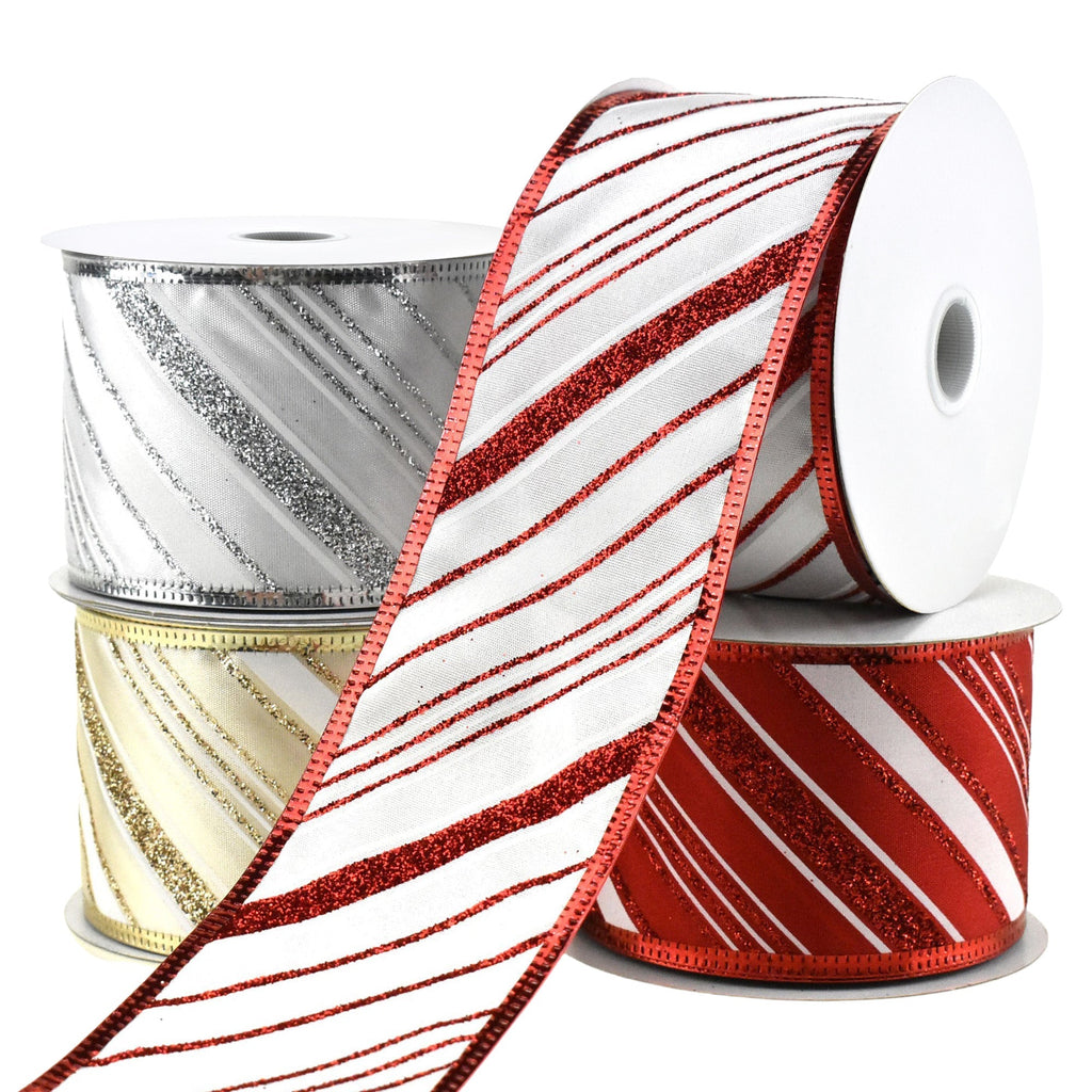 Glittered Christmas Diagonal Stripes Wired Ribbon, 2-1/2-Inch, 10-Yard