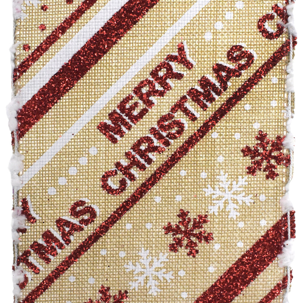 Glittered Merry Christmas Diagonal Stripes Wired Ribbon, 2-1/2-inch, 10-yard