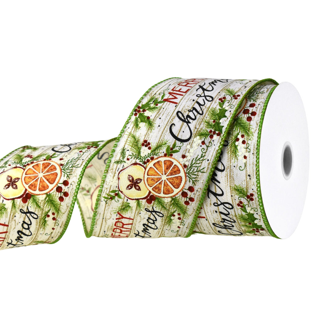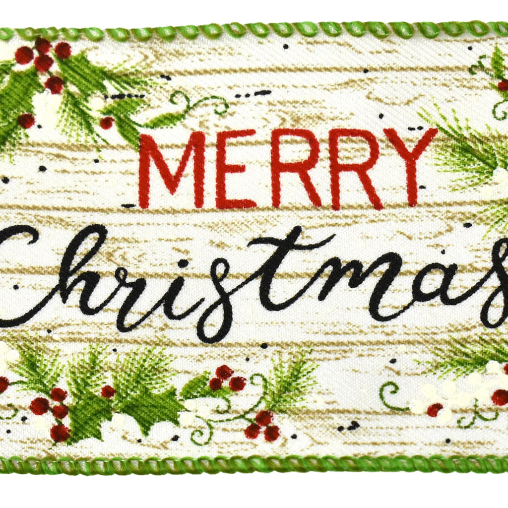 Merry Christmas Wooden Planks Wired Ribbon, 2-1/2-inch, 10-yard