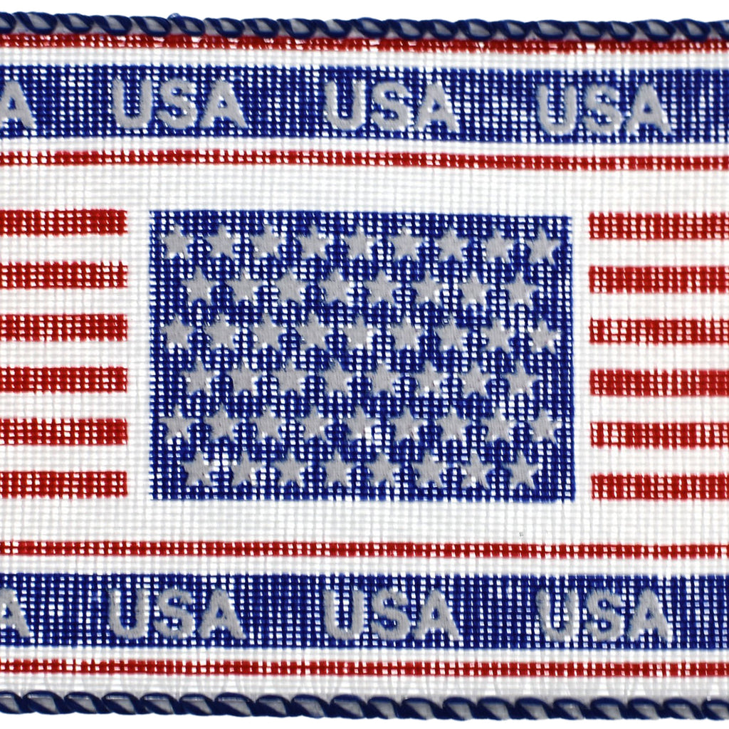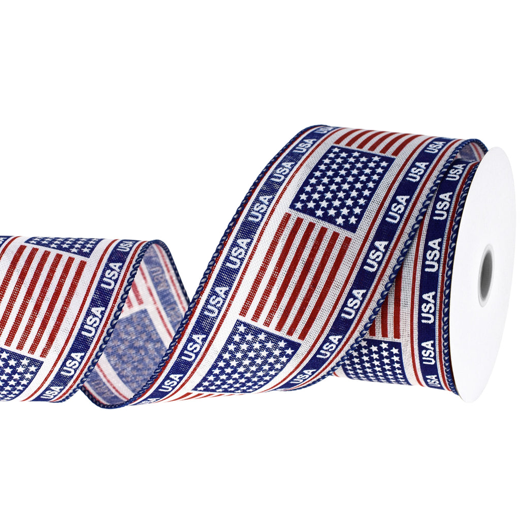 Patriotic American Flag USA Banner Wired Ribbon, 2-1/2-inch, 10-yard
