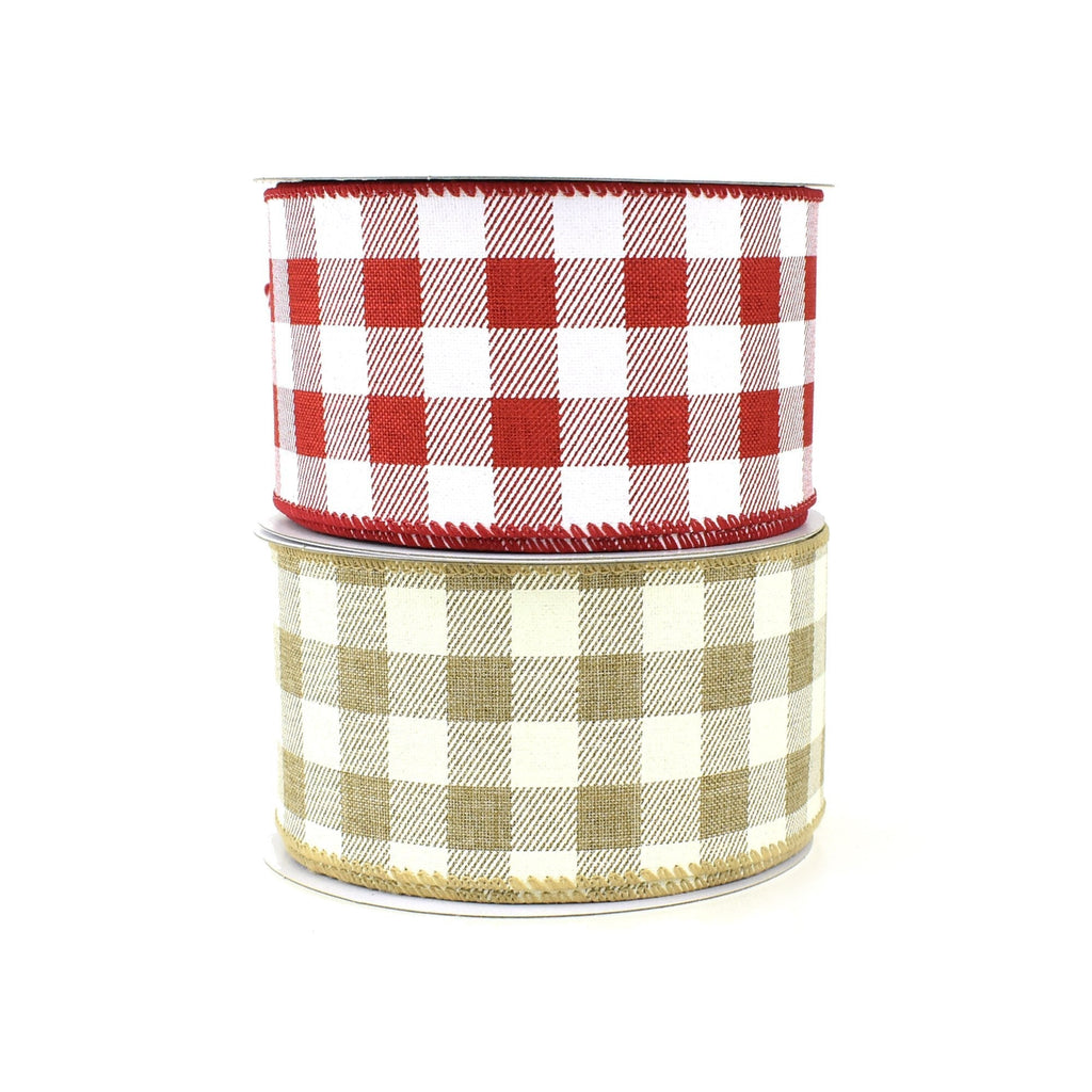 Printed Gingham Patterned Wired Ribbon, 2-1/2-Inch, 10-Yard
