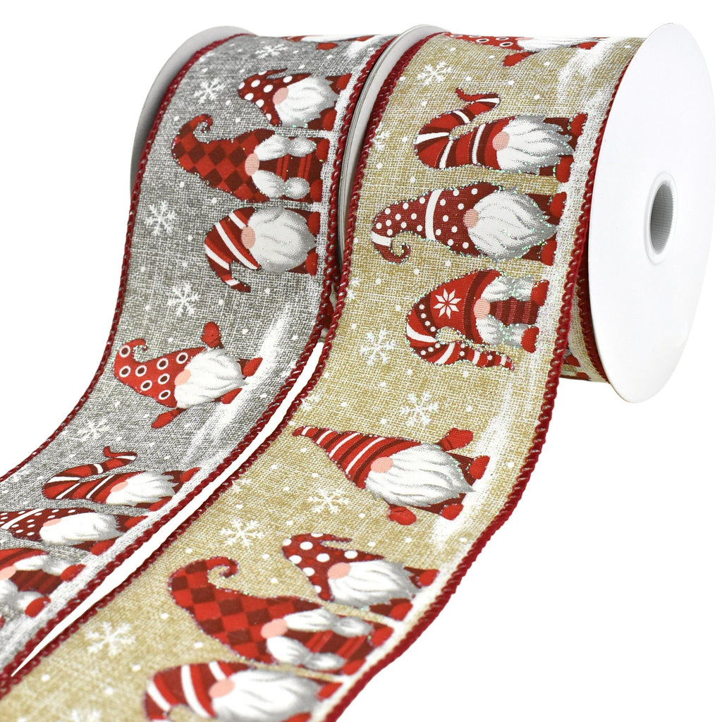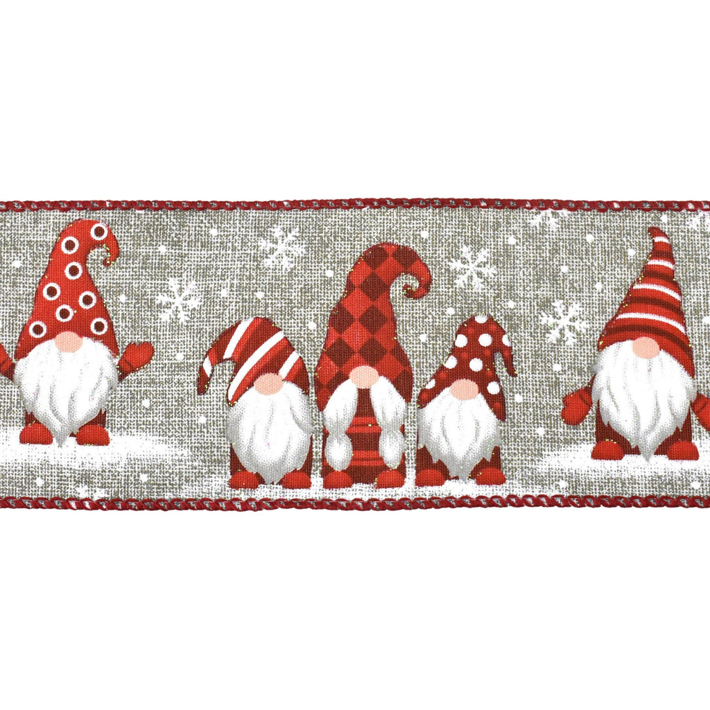 Snowy Day Christmas Gnomes Wired Ribbon, 2-1/2-Inch, 10-Yard