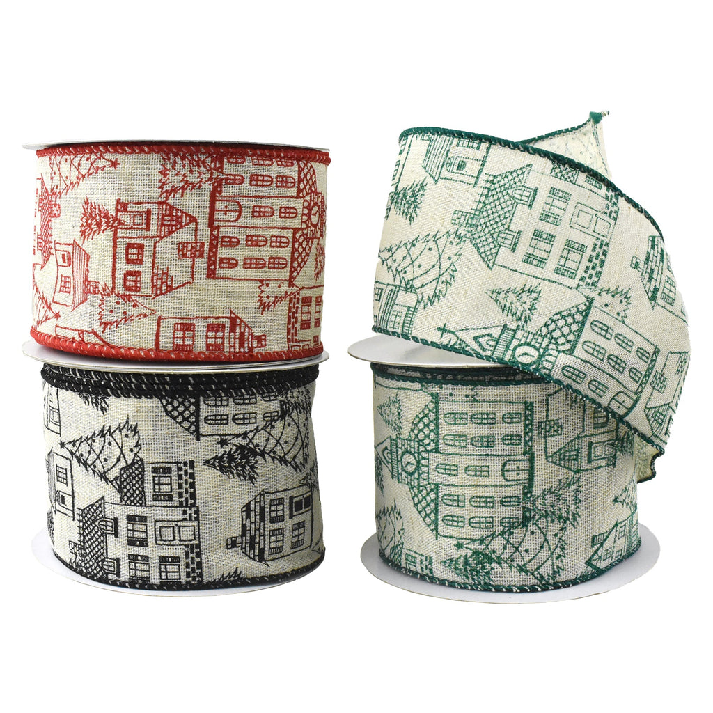 Christmas Winter Outlined Homes Wired Ribbon, 2-1/2-Inch, 10-Yard