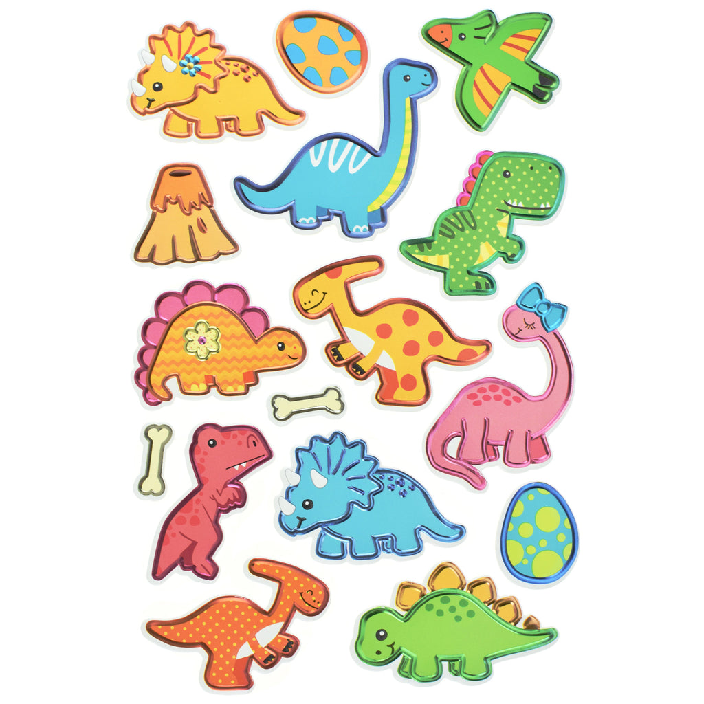 Dinosaur 3D Pop Up Foil Paper Craft Stickers, 2-inch, 16-piece