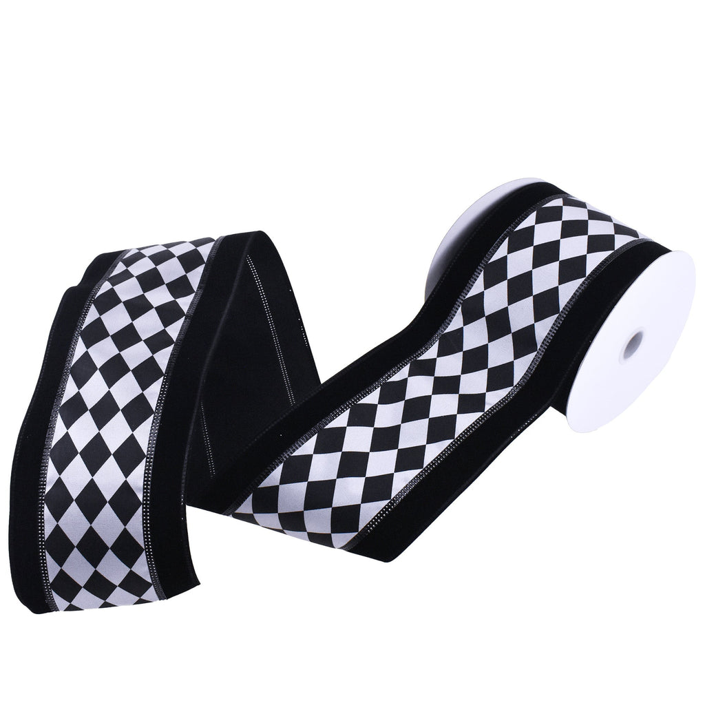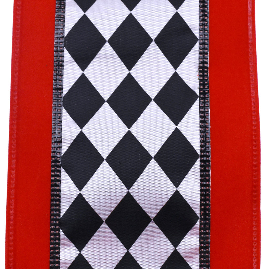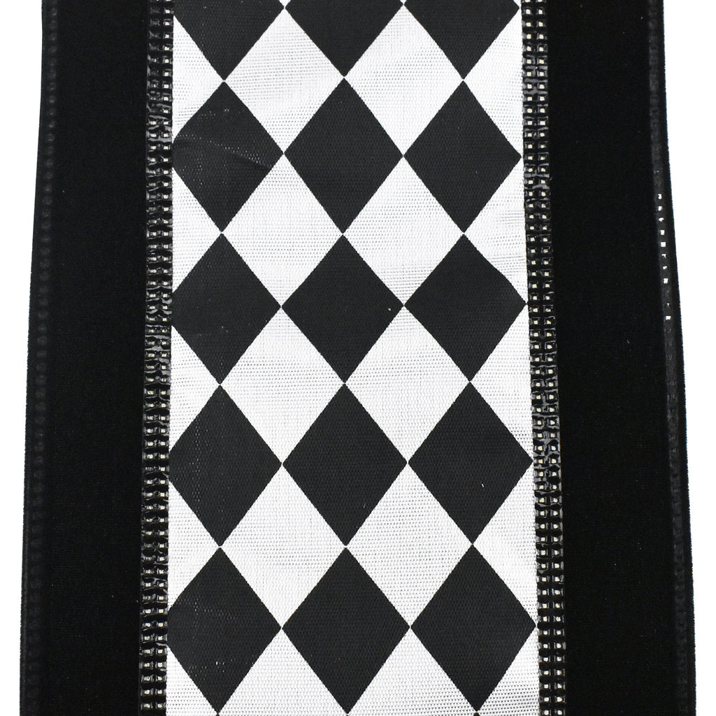 Add your own unique touch to any project! This ribbon features a harlequinn diamond pattern for the perfect addition to any indoor home decor, DIY projects, or any other crafting needs. Take your decorating or DIY to the next level! Note: Contains wire Length: 10 yards Width: 4"
