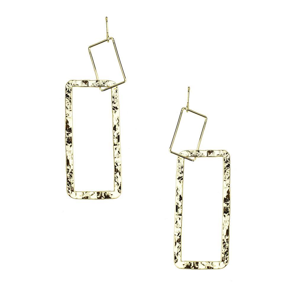 LOVELY DROP EARRINGS - These earrings feature double open rectangles, which makes it look more unique and eye-catching. These pair of earrings are gold dipped.