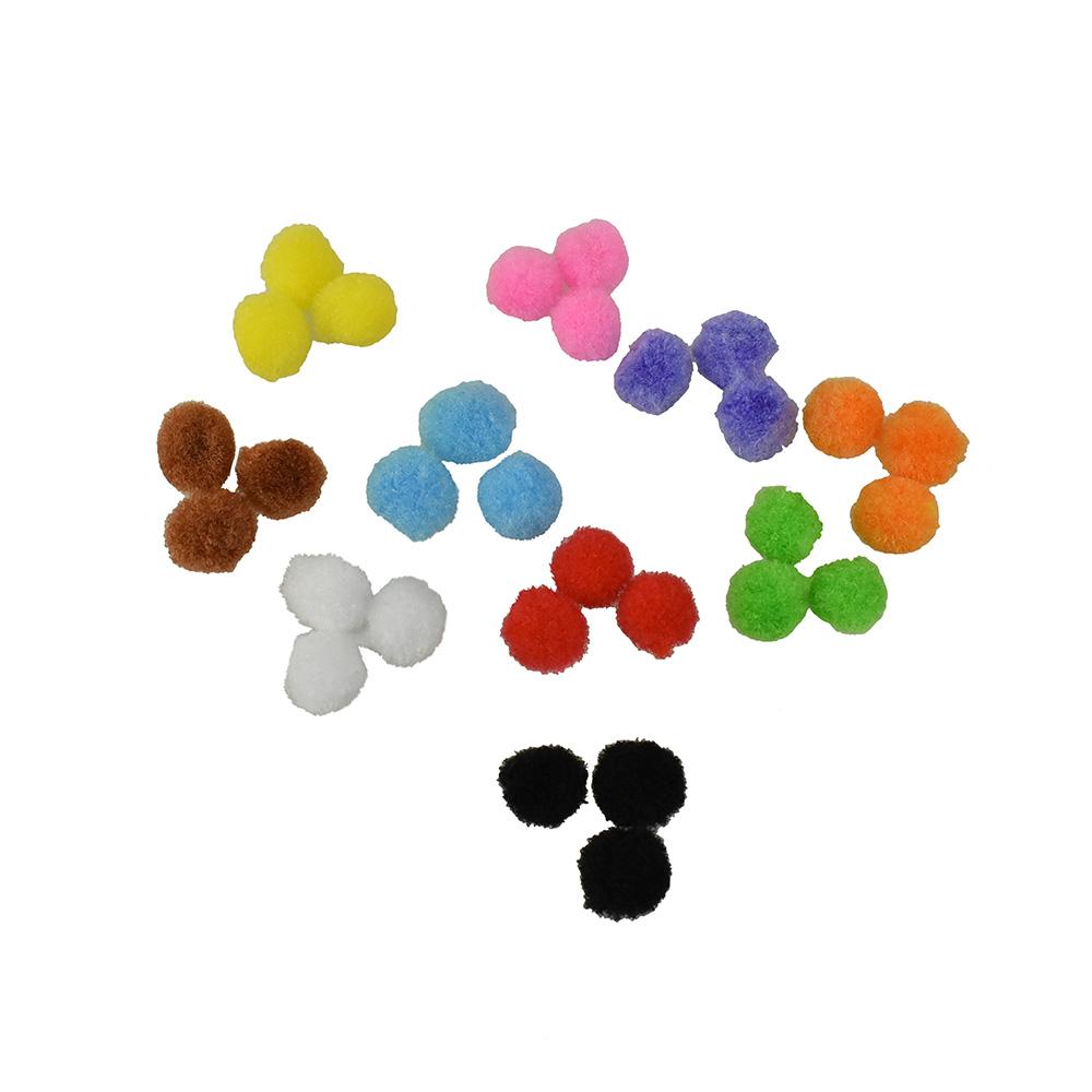 Features a raccoon, dinosaur, rainbow and rocket ship outline with 10 pom pom colors, including: pink, yellow, white, brown, green, purple, blue, red, orange and black. Each order comes with eight pom pom craft outlines and three 0.07 lb. pom pom bags. Note: Glue not included.