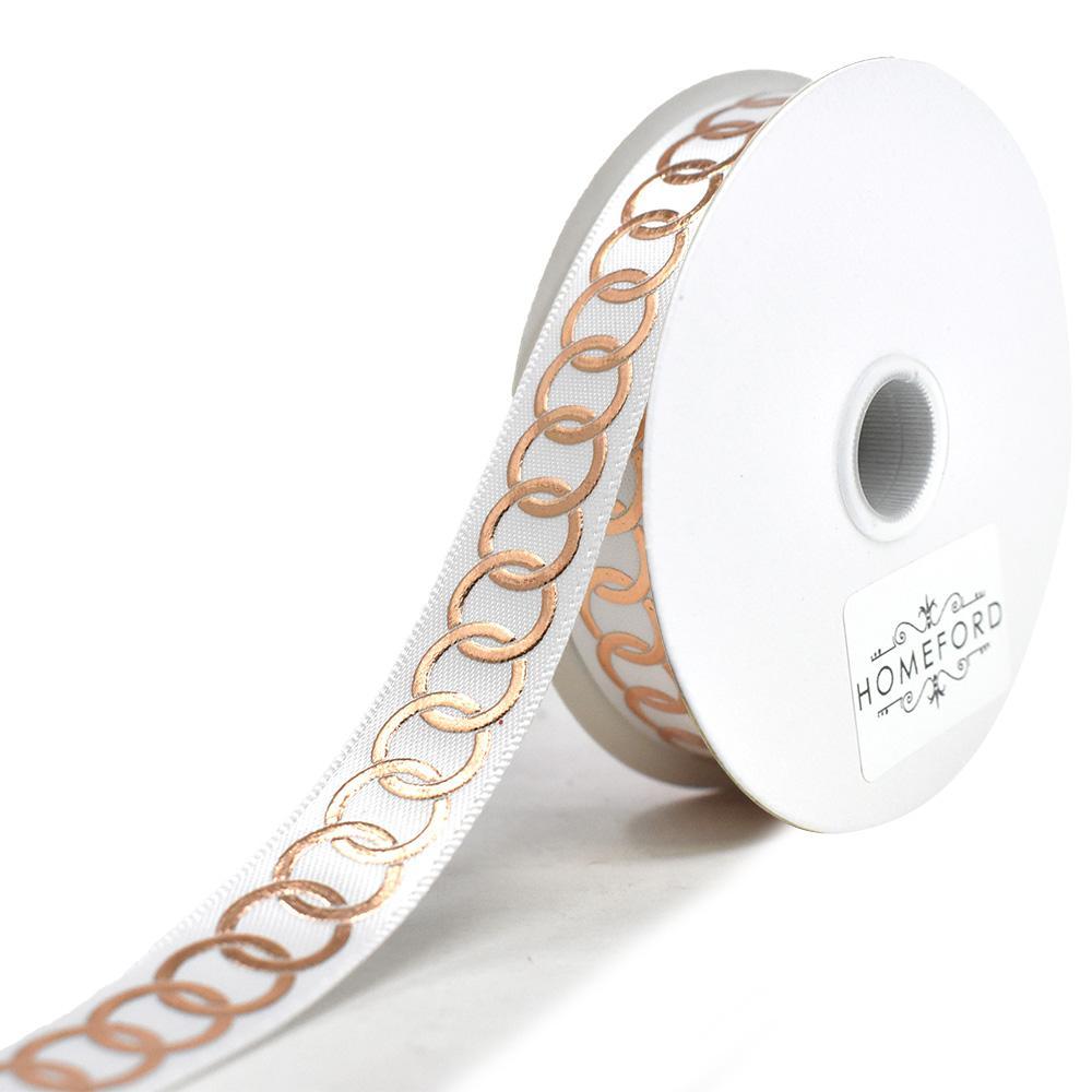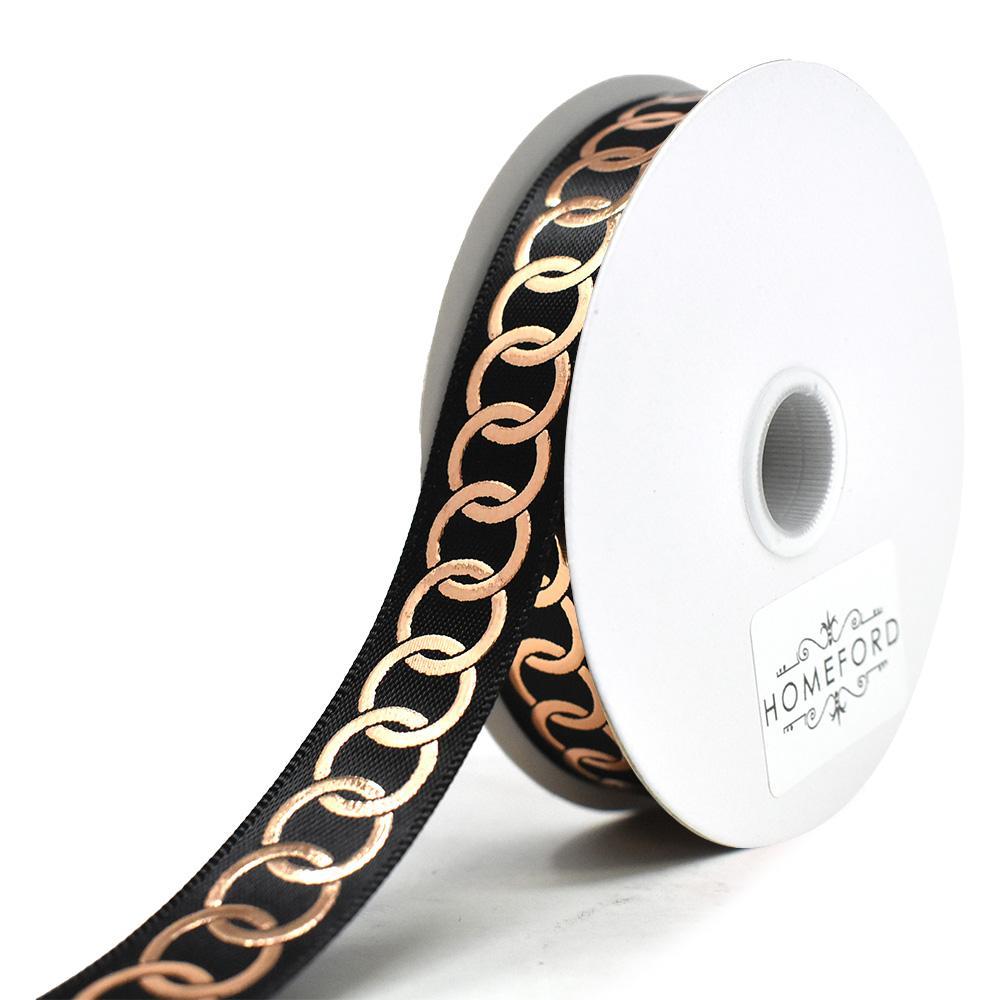 Add your own personal touch to any project! This ribbon features a metallic chain link pattern. Take your decorating or DIY to the next level!