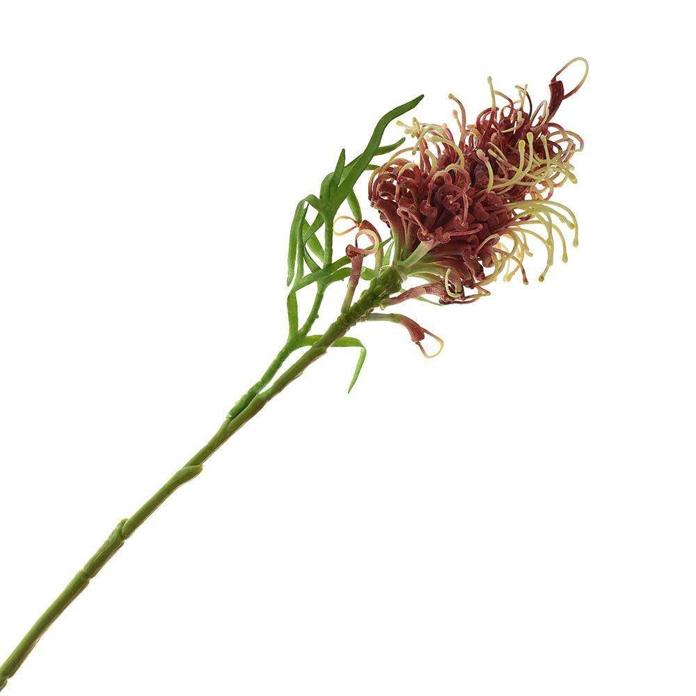Can be used for flower arrangements, home decor, holiday decorations and DIY projects. Features a grevillea banksii spray in a white/green, coral or wine color.