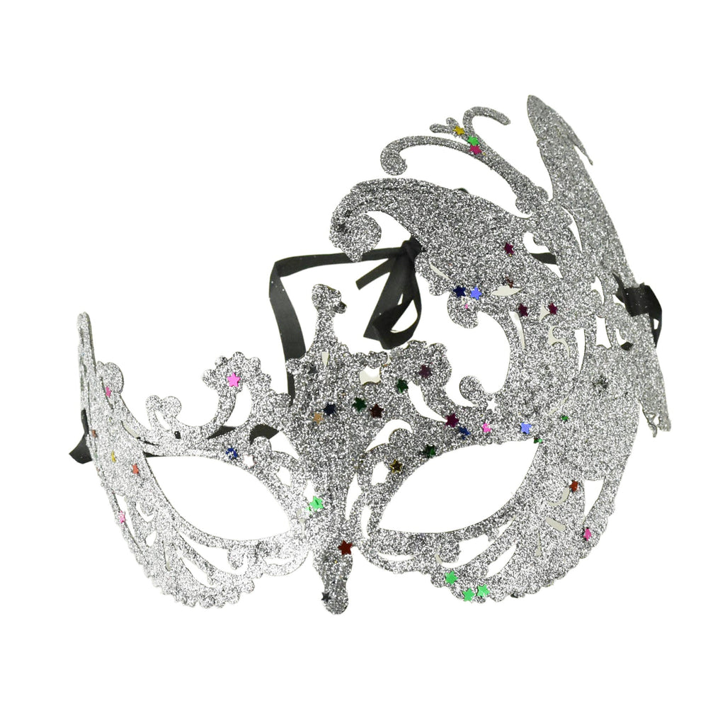 Add a little glamour and sparkle to your next party with this plastic glitter mask! Pefect for parties, cosplay, or just dressing up! Spice up your next Halloween get-together with a little bit of style! Length: 9" Width: 7"