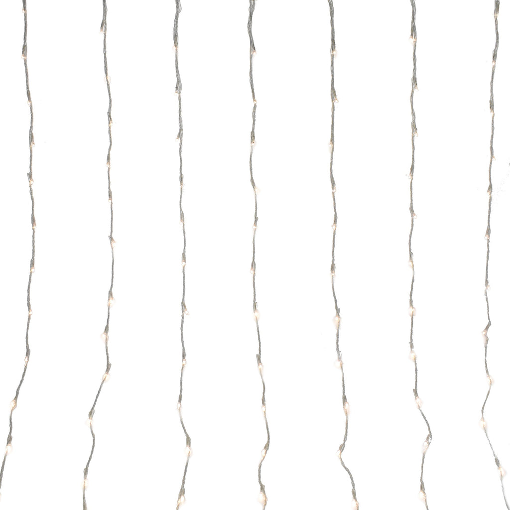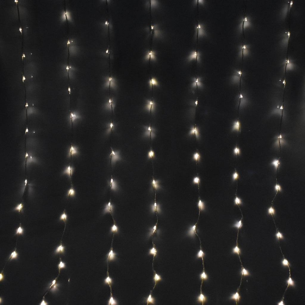 Light up any space with this LED light curtain! Featuring a total of 800 off-white lights and flexible pattern, this versatile light curtain can be placed on walls and other surfaces and put on a show simply by plugging in! Includes a button by plug to allow basic customization of light patterns.