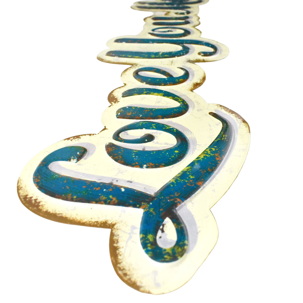 Add a personal touch to your home or office with this unique hanging sign. The rustic finish gives it an aged, weathered look that complements any decor style. The hanging design makes it easy to install, and the durable metal construction ensures it will last for years to come. Length: 35" Width: 7"
