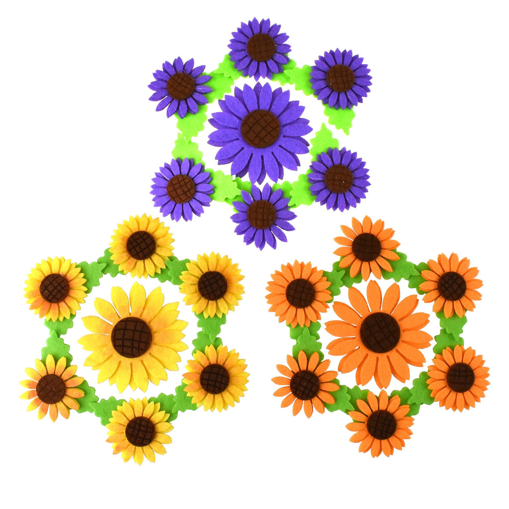 Assorted Felt Adhesive Sunflowers, 6-1/2-Inch, 3-Piece