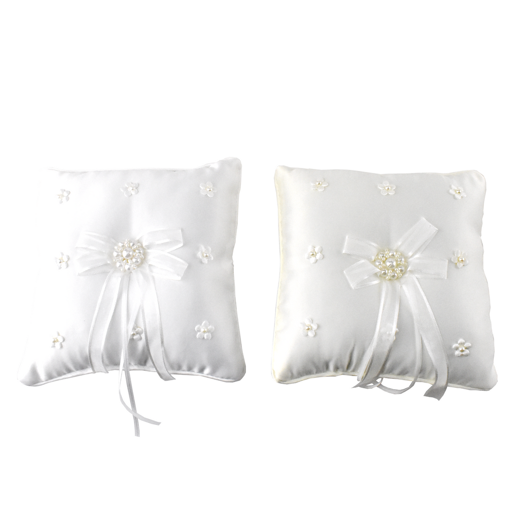 Floral Pearl Ribbon Lace Wedding Pillow, 6-1/2-Inch