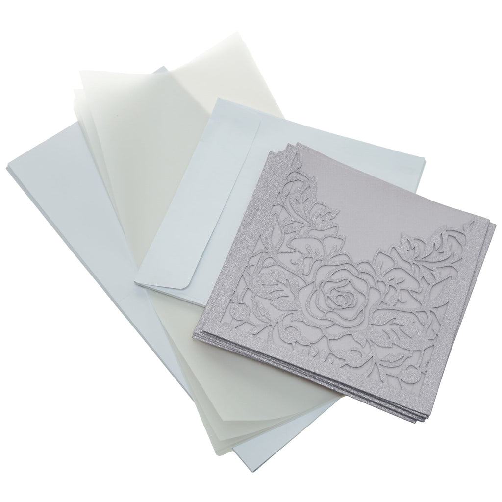 Square Glitter Laser-Cut Rose Blank Invitations, 6-Inch, 8-Count