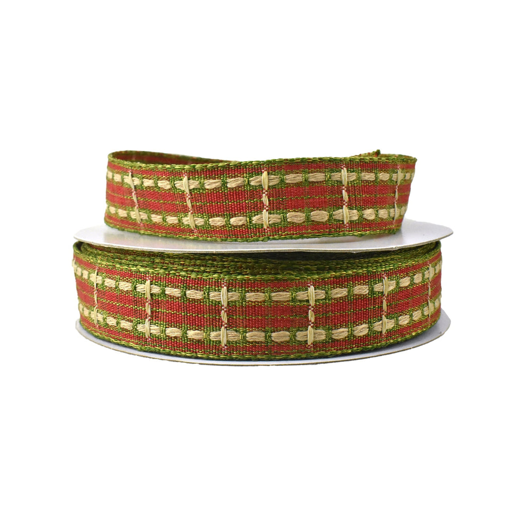 Add your own personal touch to any project! This ribbon features a beautiful stitched pattern in festive holiday colors for Christmas home decor, DIY projects, or any other crafting needs. Take your decorating or DIY to the next level!