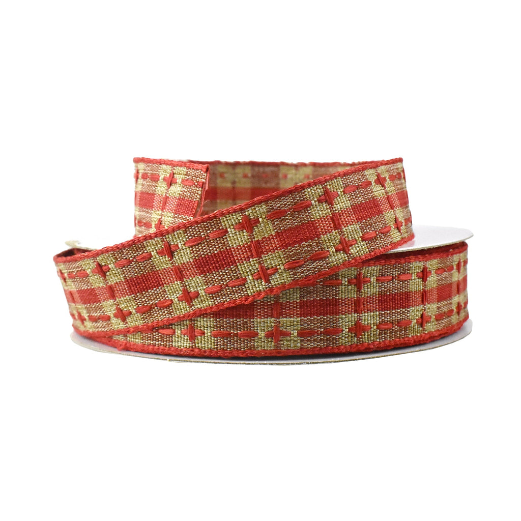 Plaid Saddle Stich Faux Linen Ribbon, 7/8-Inch, 20-Yard