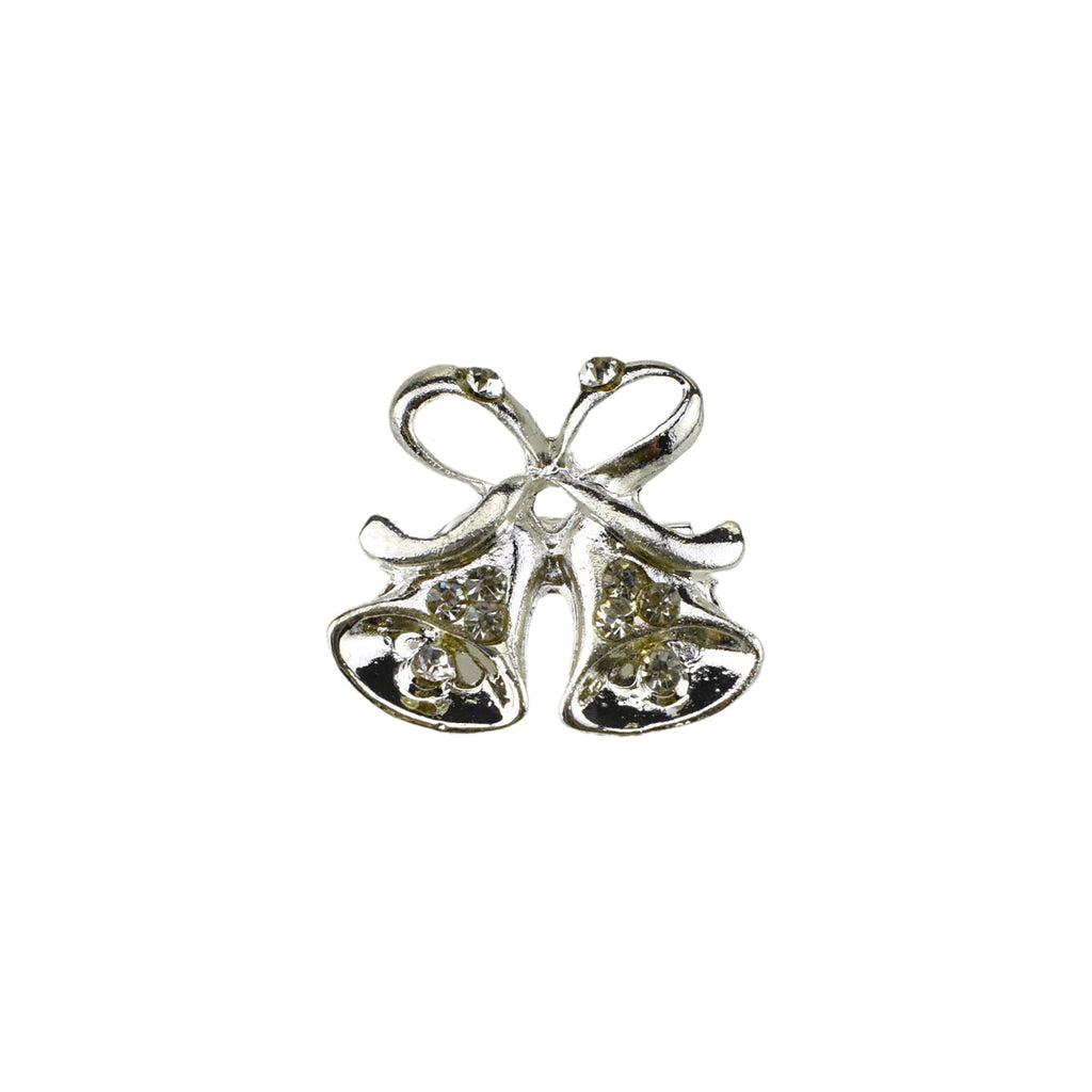 Add a mini accent to your favorite DIY projects with these adorable metal pins. These metal accents feature a twin bells with a bow finished with rhinestones that's ideal for use on jewelry and paper crafts. Perfect for DIY projects like jewelry making, scrapbooking, clothing design, home decorating and more! Pack: 12 pcs Length: 0.875" Width: 0.875"