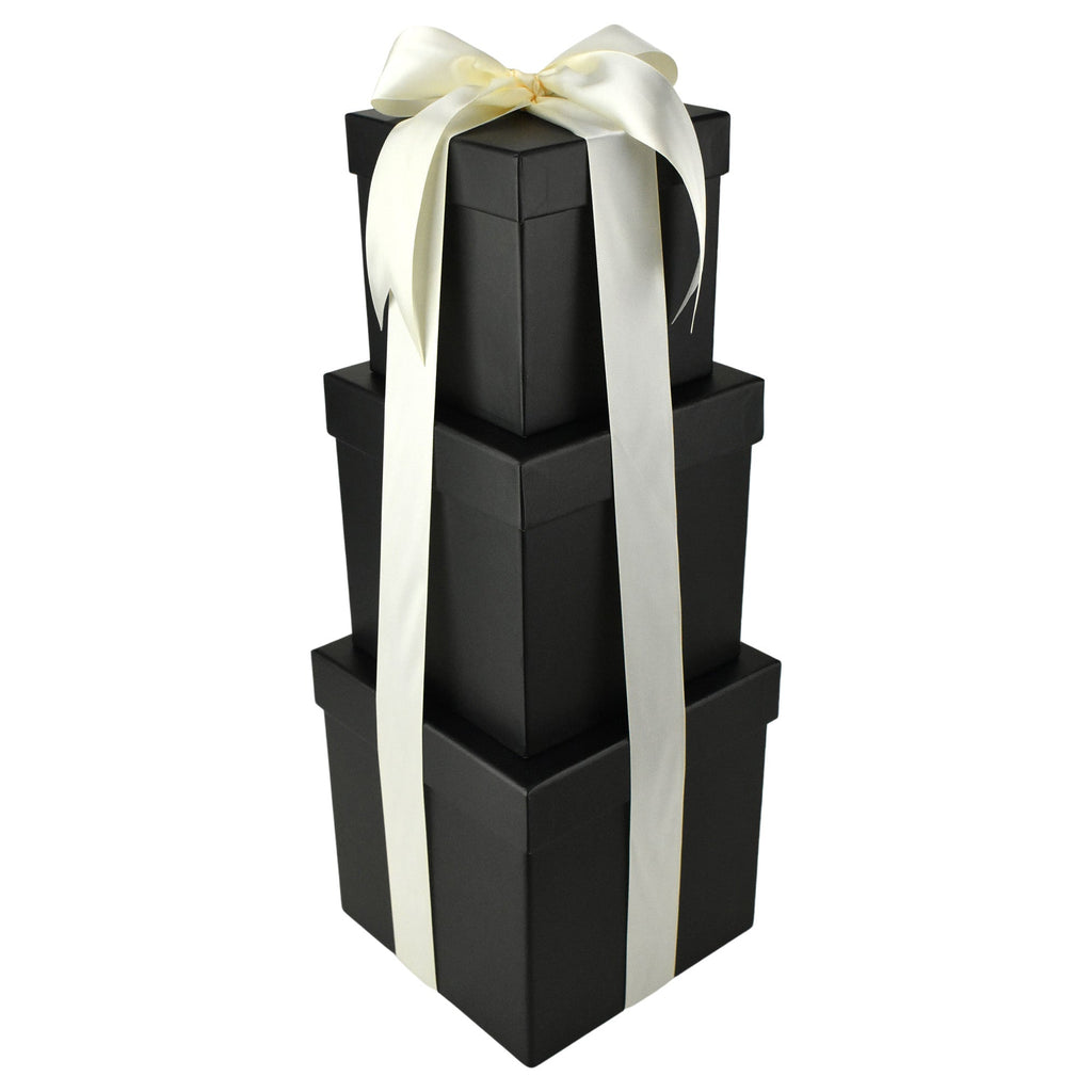 Nested Square Gift Boxes, Black, 5-inch, 6-inch, 7-inch, 3-piece, 1.5-inch Satin Ribbon