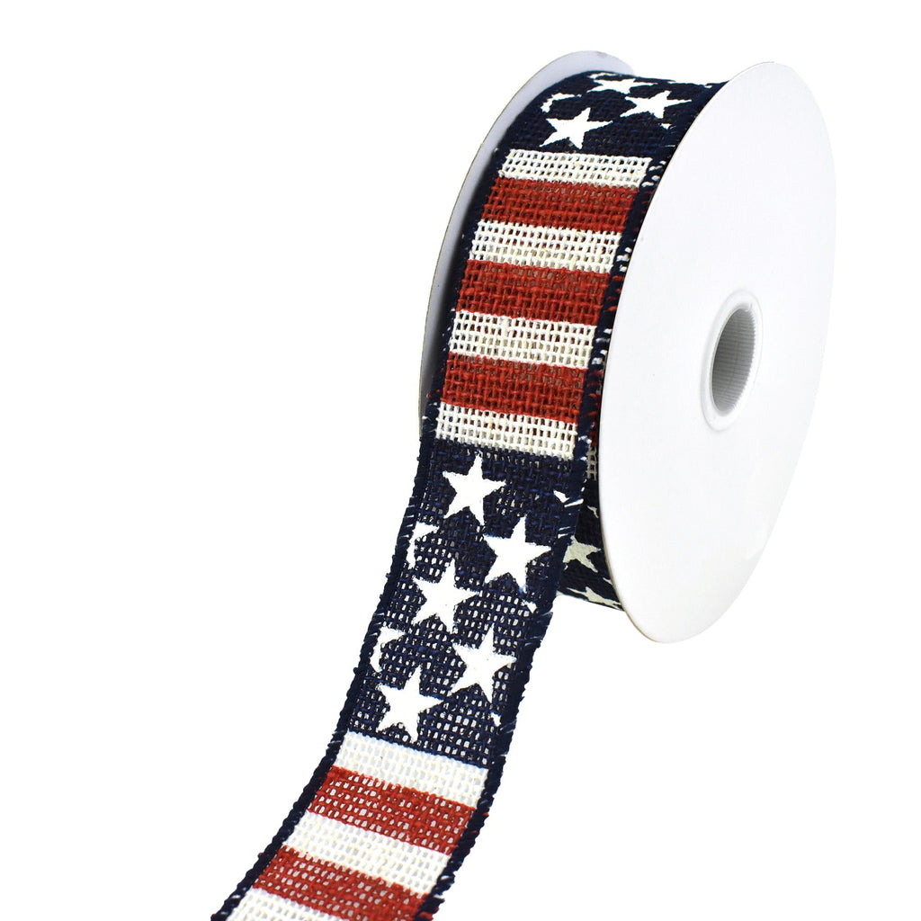 Stars and Stripes Faux Burlap Wired Ribbon, 1-1/2-Inch, 10-Yard