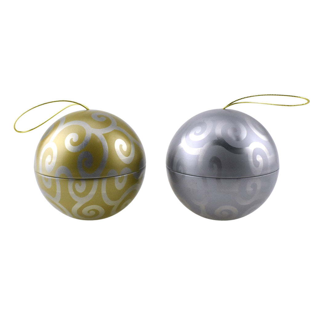 Enjoy the holidays with a festive touch! These Christmas ball ornament tins are the perfect decoration for your tree or decor for home this holiday season! Fill them with candy at Christmas, or fill them with mementos of your travels at any time of year to create a homemade gift that's sure to please! Pack: 2 tins (1 gold, 1 silver) Diameter: 4"