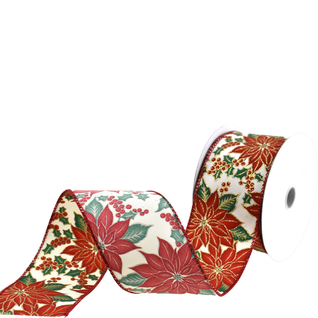 Christmas Glitter Poinsettias and Berries Wired Ribbon, 2-1/2-Inch, 10-Yard