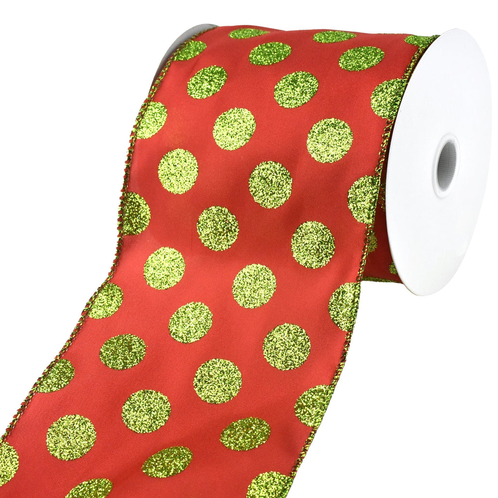 Add your own personal touch to any project! This ribbon features a beautiful polka dot pattern with lime green and red colors, ready for Christmas home decor, DIY projects, or any other crafting needs. Take your decorating or DIY to the next level! Note: Contains wire