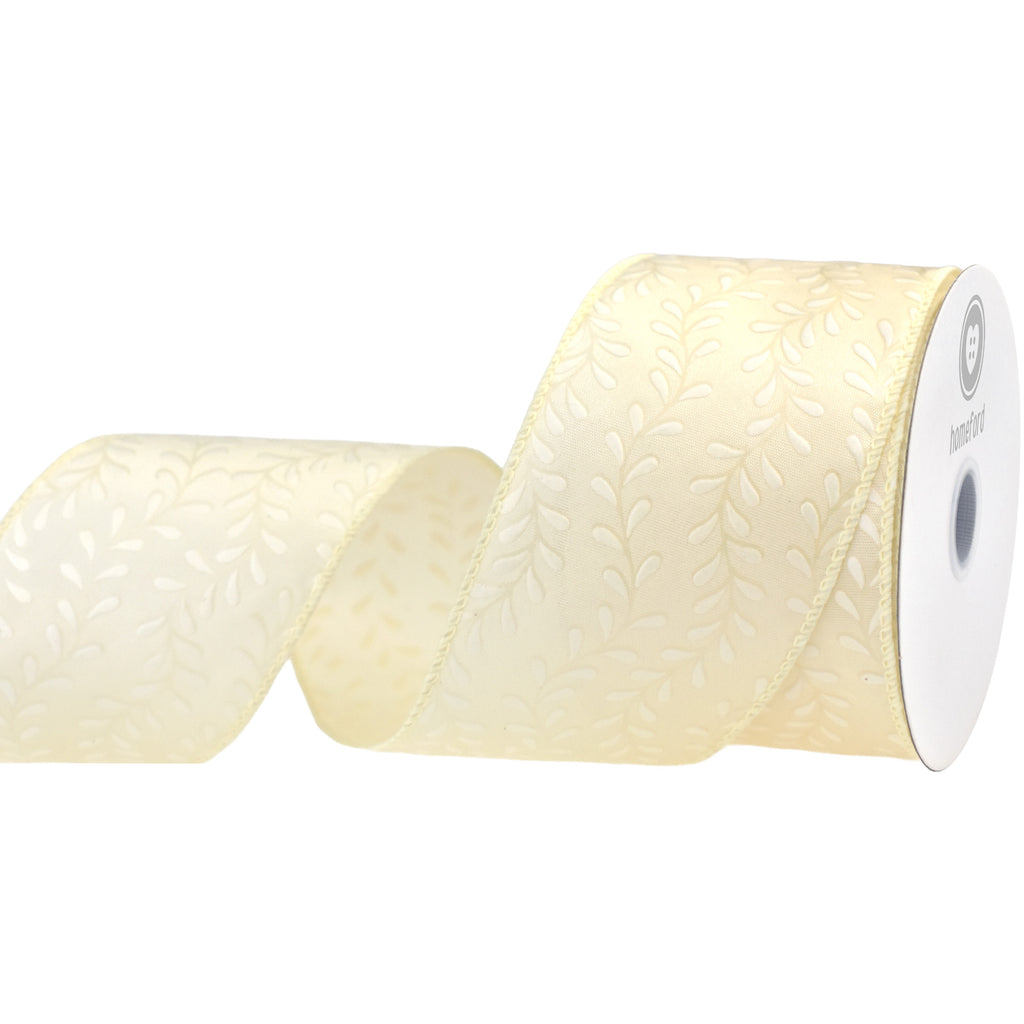 Christmas Iridescent Embossed Vines Satin Wired Ribbon, 10-yard