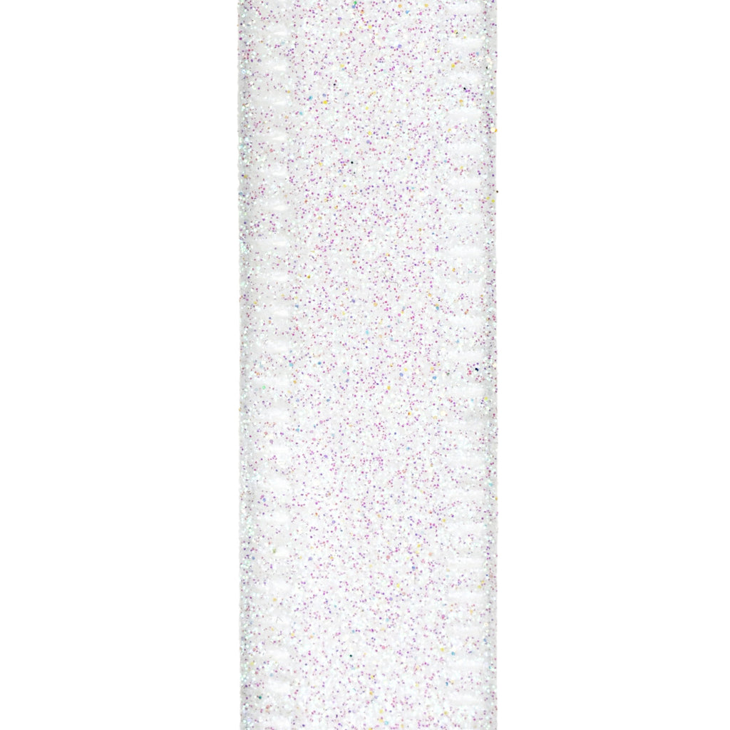 Christmas Iridescent Flat Glitter Wired Ribbon, 5/8-inch, 10-yard