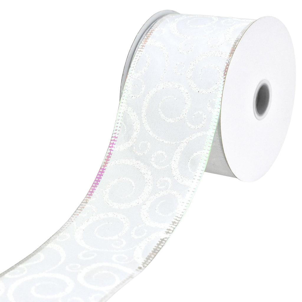 Christmas Iridescent Glitter Swirls Satin Wired Ribbon, 10-yard