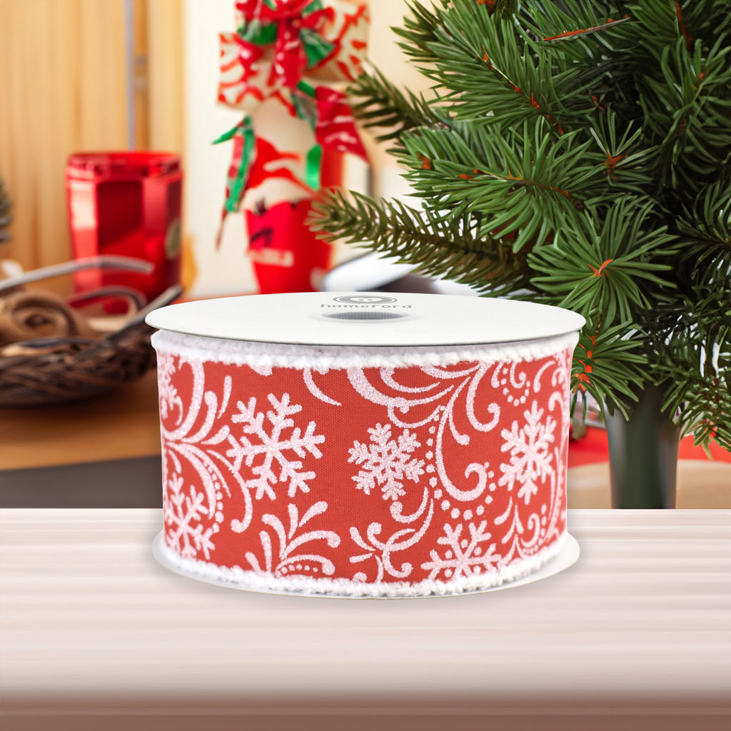 Bring a touch of winter wonder to your holiday decorating with our Christmas Iridescent Snowflakes Fuzzy Edge Wired Ribbon. This elegant ribbon features shimmering iridescent snowflakes that glisten with a frosty sparkle, perfectly capturing the magic of freshly fallen snow. The soft fuzzy edges add a cozy, textured finish, while the wired design makes it easy to shape into beautiful bows, loops, and accents that hold their form. Feature: Wired edge Length: 10 yds