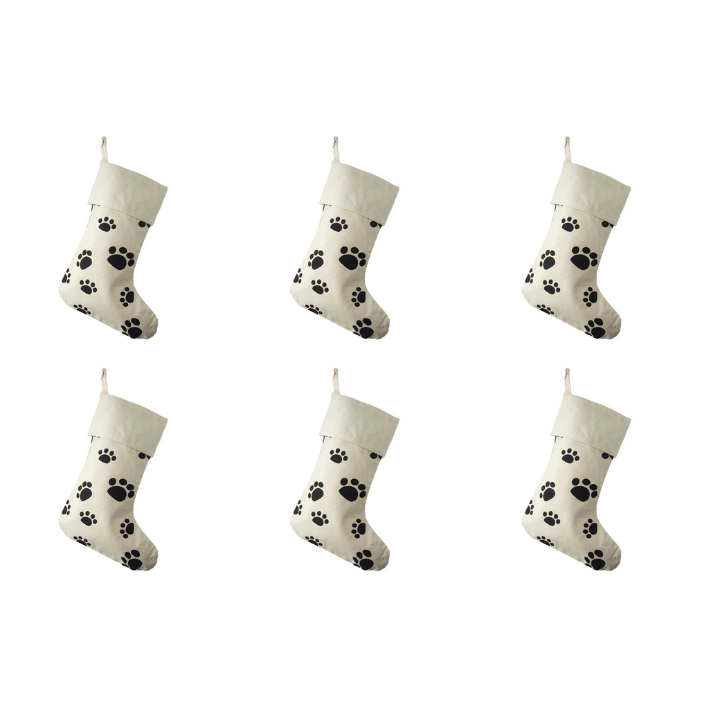 Animal Paw Print Cotton Christmas Stocking, 17-inch, Ivory