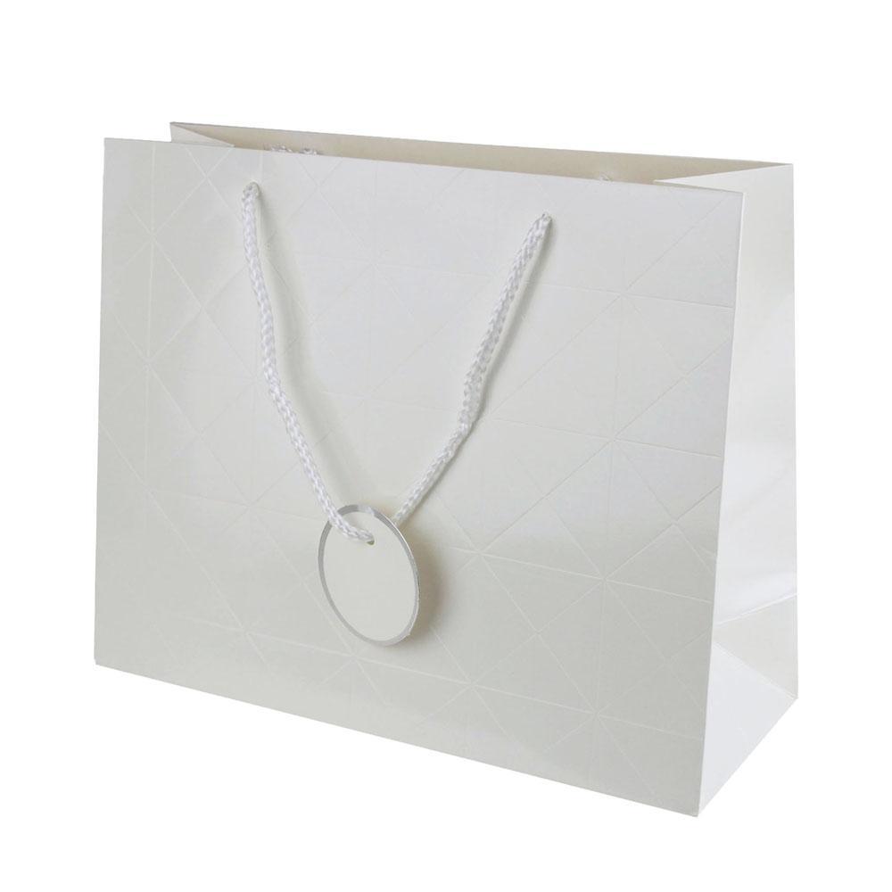 Glossy Checkered Paper Gift Bags, 10-Inch, White