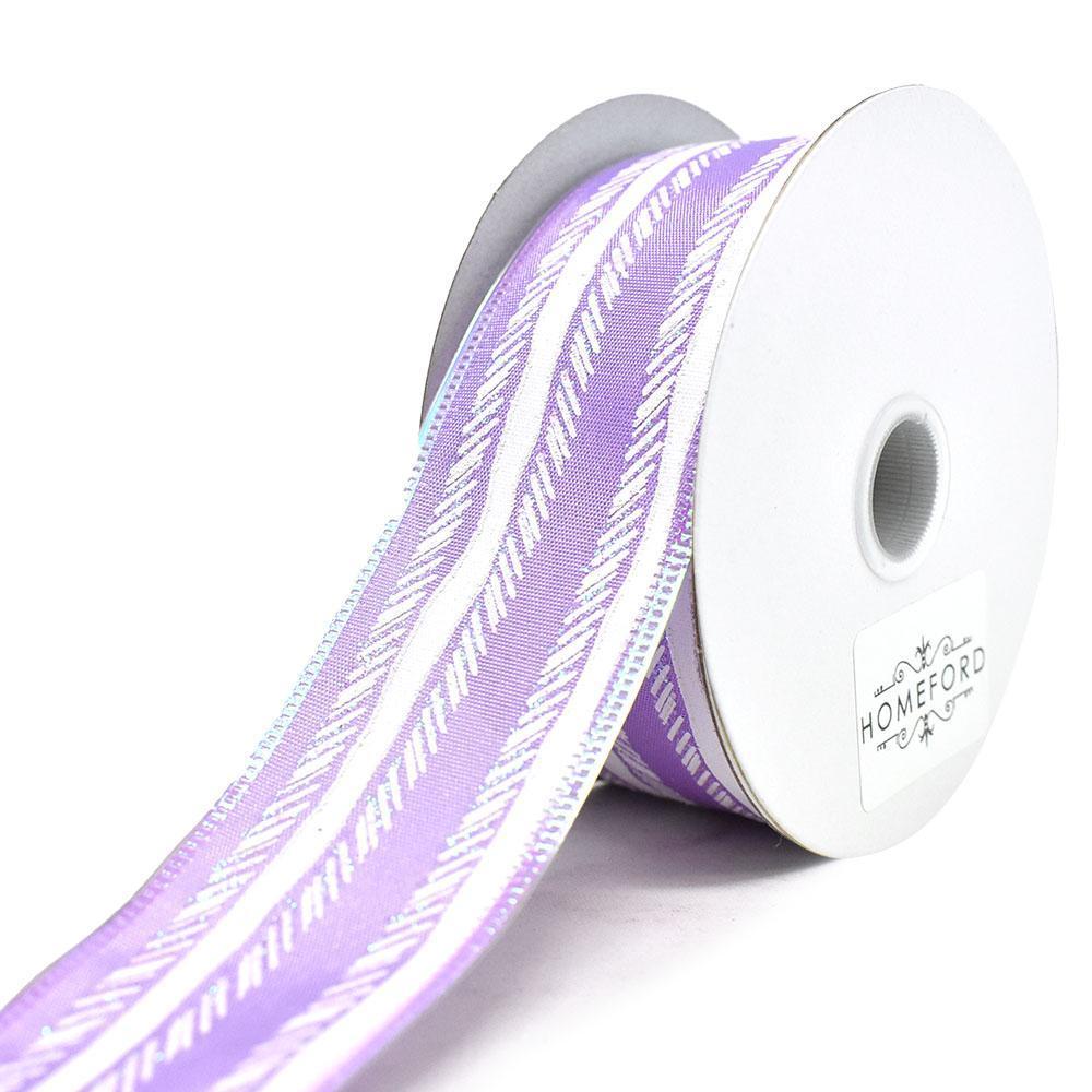 Feathered Stripes Iridescent Edge Satin Wired Ribbon, 10-yard