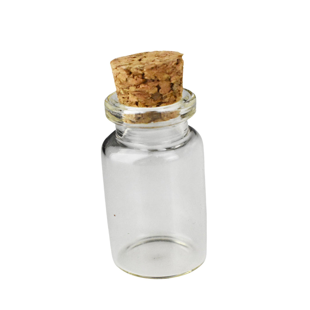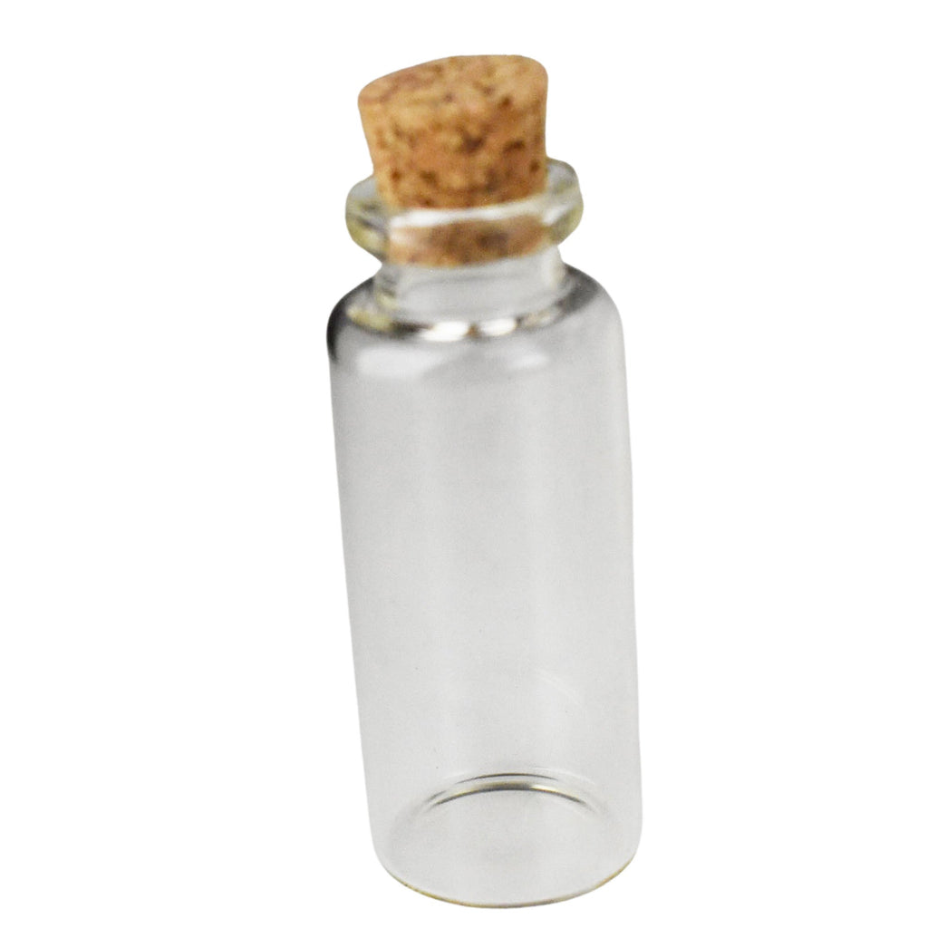 These mini glass containers are the perfect container for bead storage, small embellishments, or even a little note to someone special. These glass bottles are made from real glass with a cork lid on top and come in various sizes. These containers will look beautiful sitting on your craft table or desk! Large Bottle: Length: 2.75" Width: 1" Second Bottle: Length: 2.5" Width: 0.75" Third Bottle: Length: 2" Width: 0.65" Smallest Bottle: Length: 1.75" Width: 0.5"