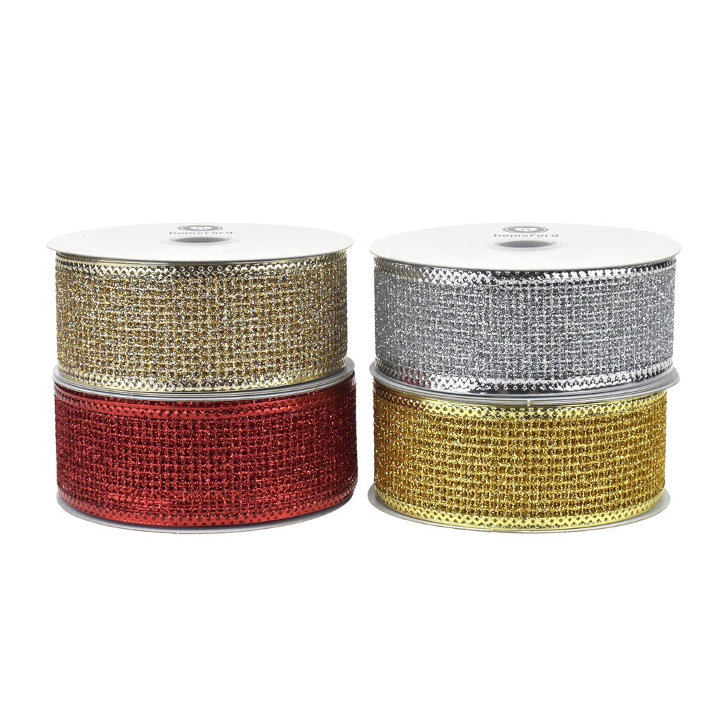 Christmas Glittered Net Metallic Edge Wired Ribbon, 1-1/2-inch, 10-yard
