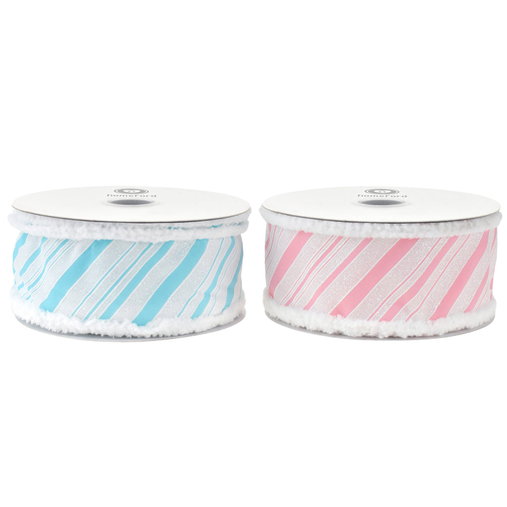 Christmas Glittered Stripes Snowy Edge Wired Ribbon, 2-1/2-inch, 10-yard